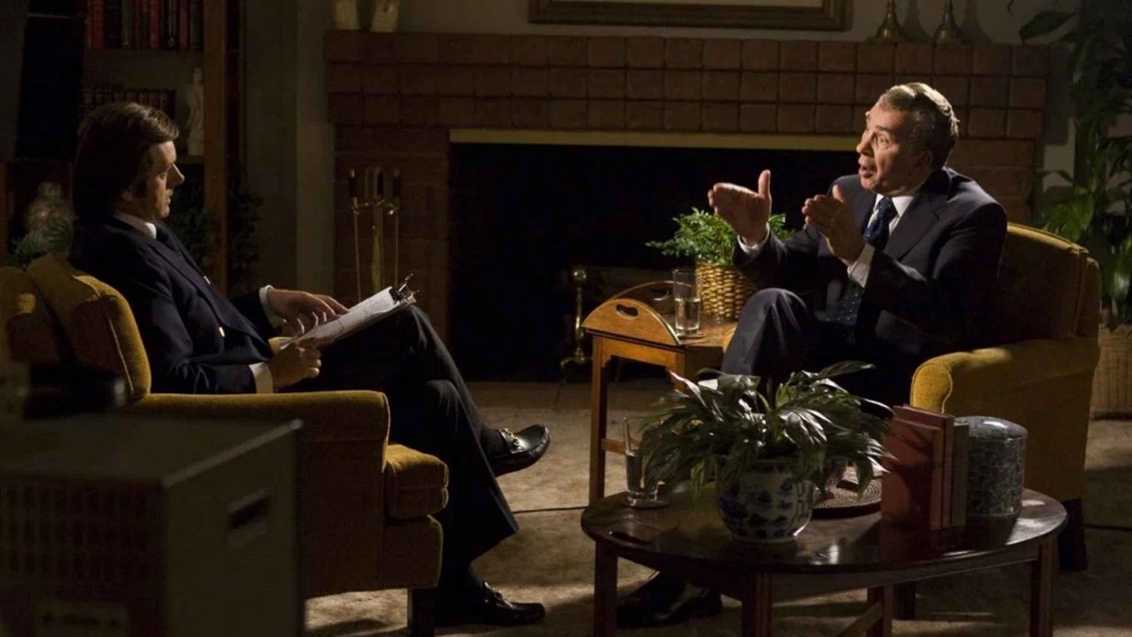 США, 1977 год. Спустя три года после своей бесславной отставки, последовавшей после Уотергейтского скандала, экс-президент США Ричард Никсон нарушает молчание и дает согласие на эксклюзивное интервью британскому телеведущему Дэвиду Фросту. Последний, имеющий реноме плейбоя, но никак не серьезного аналитика, ввязывается в это дело, дабы поправить свое пошатнувшееся положение в качестве шоумена. Телеканалы отказываются финансировать это сомнительное дело. Но Фрост, собрав команду единомышленников, идет на риск и снимает многочасовое интервью с 37-м президентом США. Поначалу опытному политику Никсону удается полностью владеть ситуацией. Но его ночной звонок Фросту заставляет последнего, почти уже не надеющегося на успех, собраться и откопать эксклюзивный компромат, который помогает ему...