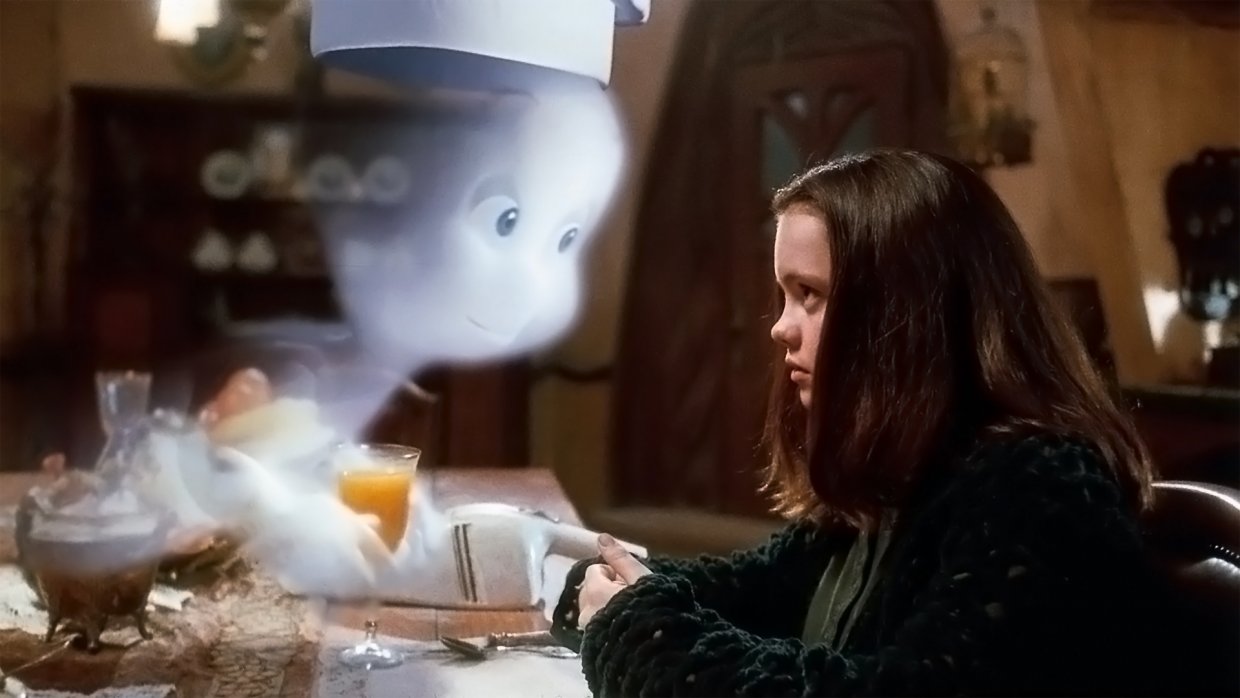 Каспер, маленькое дружелюбное привидение, не желает походить на своих хулиганствующих собратьев. Его дружба с девочкой-подростком Кэт помогает ей и ее отцу, доктору Харви, справиться с опасностями, поджидающими их в населенном призраками доме.