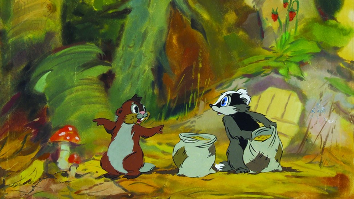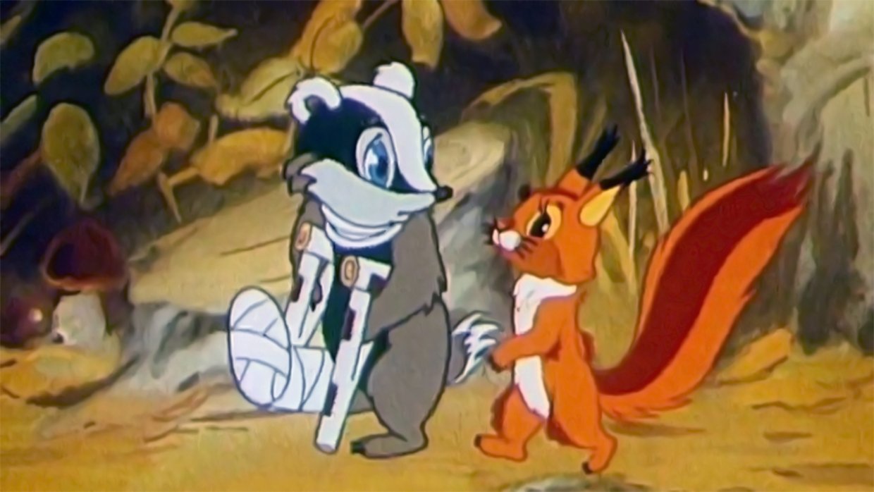 Беспокойный бельчонок сообщил зверям о том, что зайка попал в лапы к медведю. И вот бобер, барсук, бельчонок и мышонок отважно отправляются выручать друга. Правда, позже выясняется, что спасать никого не нужно.